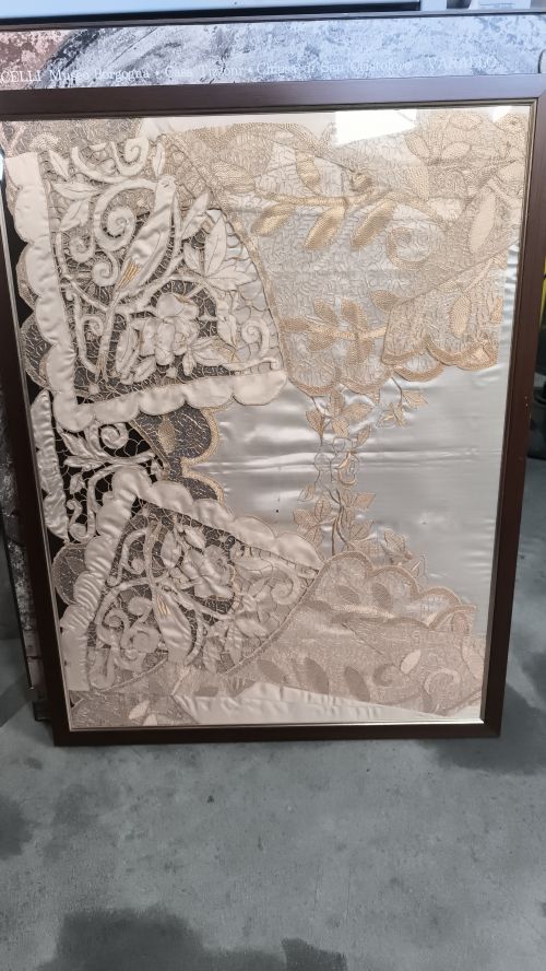 Decorazione centrini dorati su cornice Marrone