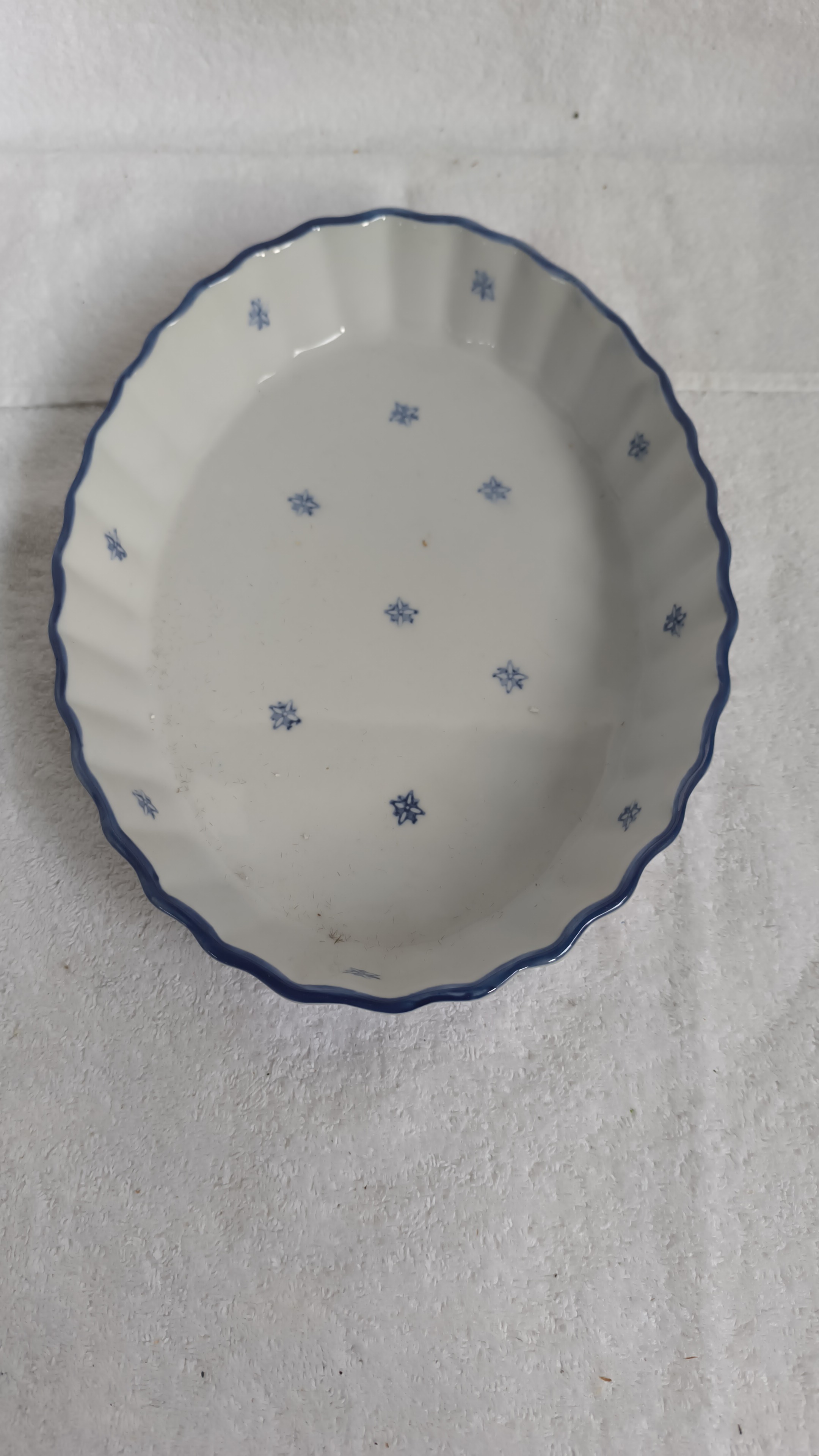 Ciotola ovale in ceramica a bordo ondulato blu